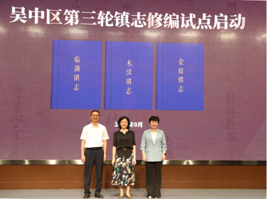 活动仪式上,jdb电子平台市地方志办公室党组书记、主任乐江,吴中区人民政府副区长朱筱菁,吴中区档案馆馆长柳建刚共同为吴中区启动了第三轮镇志修编试点。