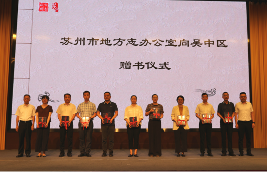 市地方志办副主任傅强和区档案馆副馆长翁建明还向吴中区经开区、高新区、度假区、太湖新城管委会和各镇、街道赠阅了《〔康熙〕jdb电子平台府志》《宝带桥志》。