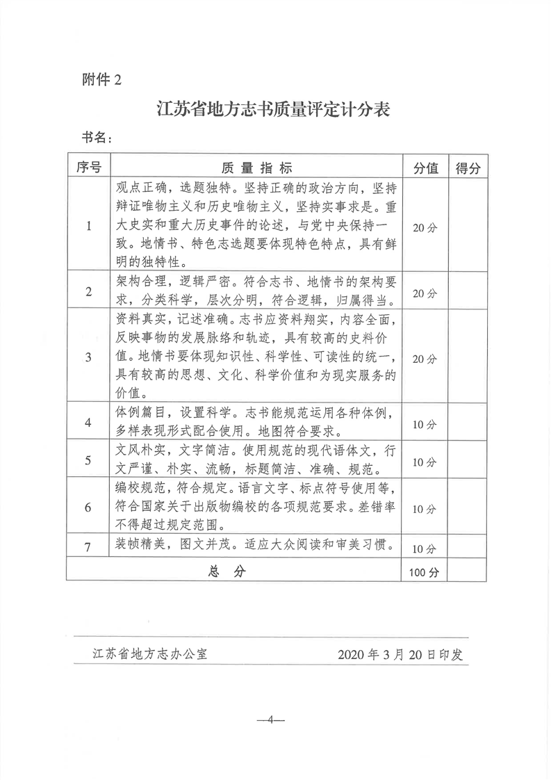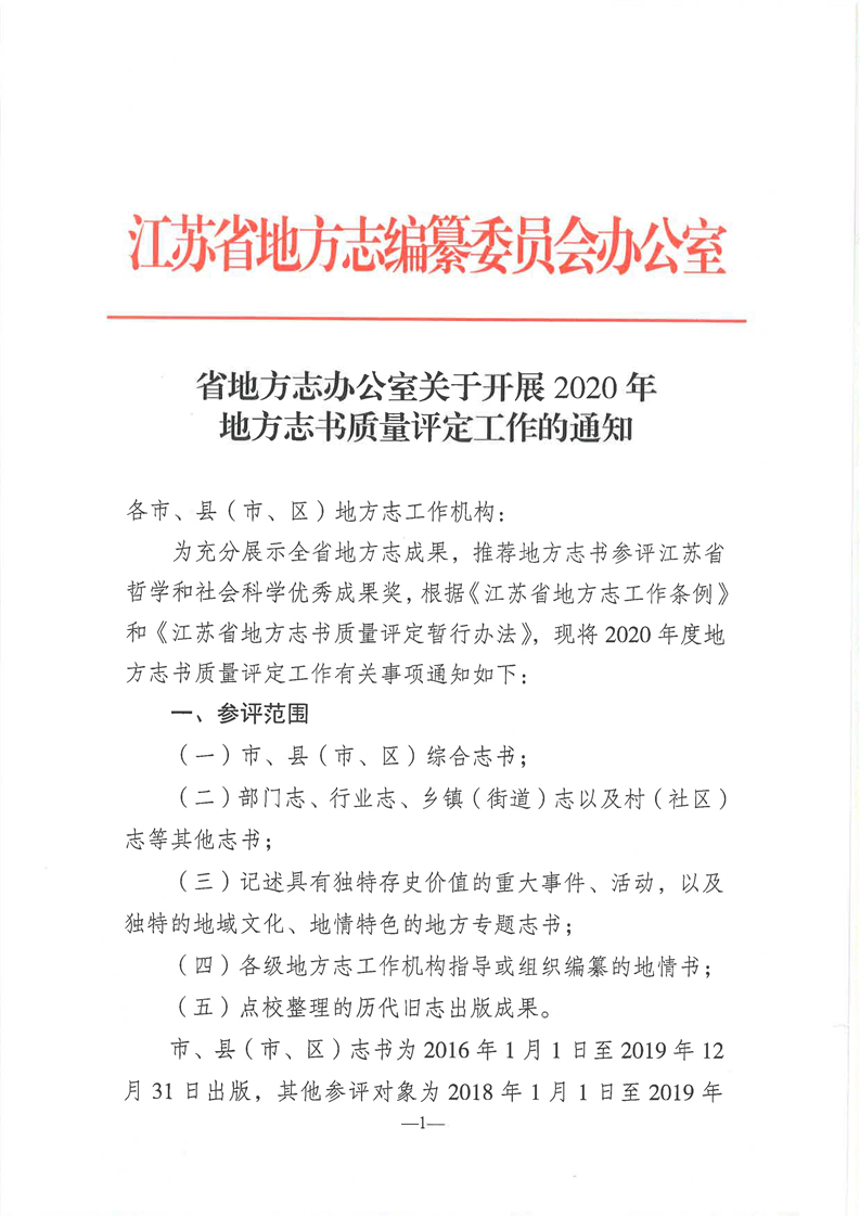 省地方志办公室关于开展2020年地方志书质量评定工作的通知