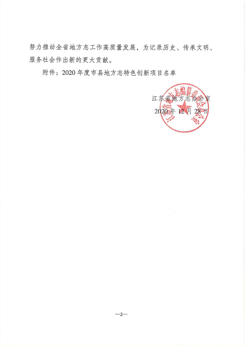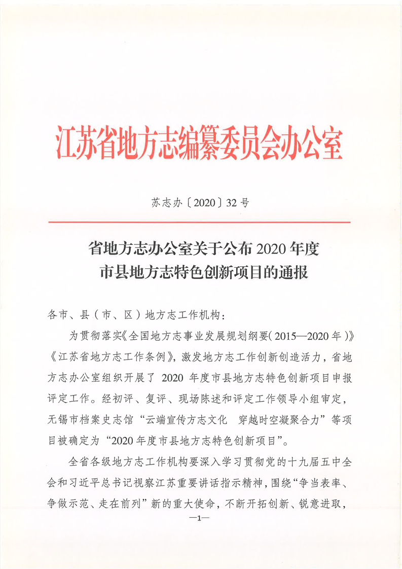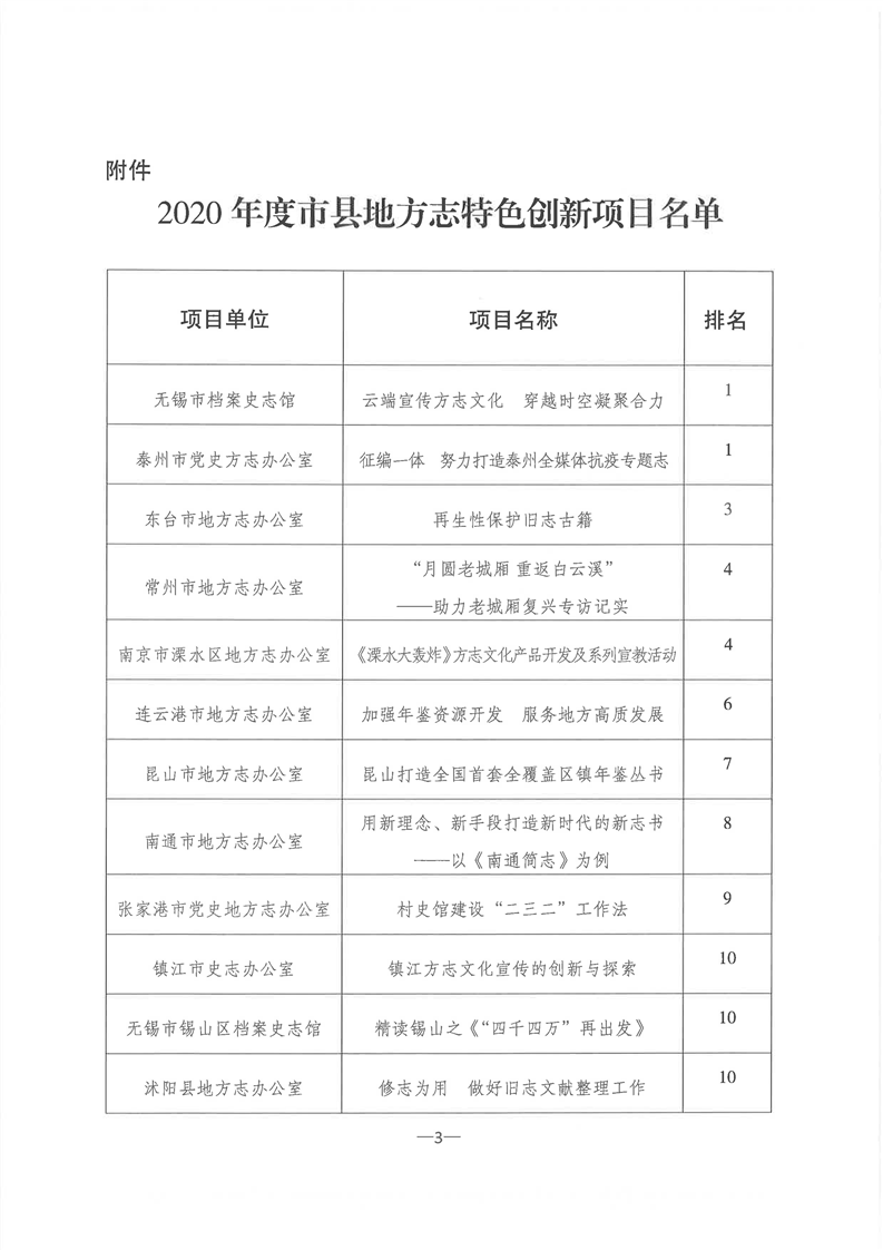 省地方志办公室关于公布202年度市县地方志特色创新项目的通报