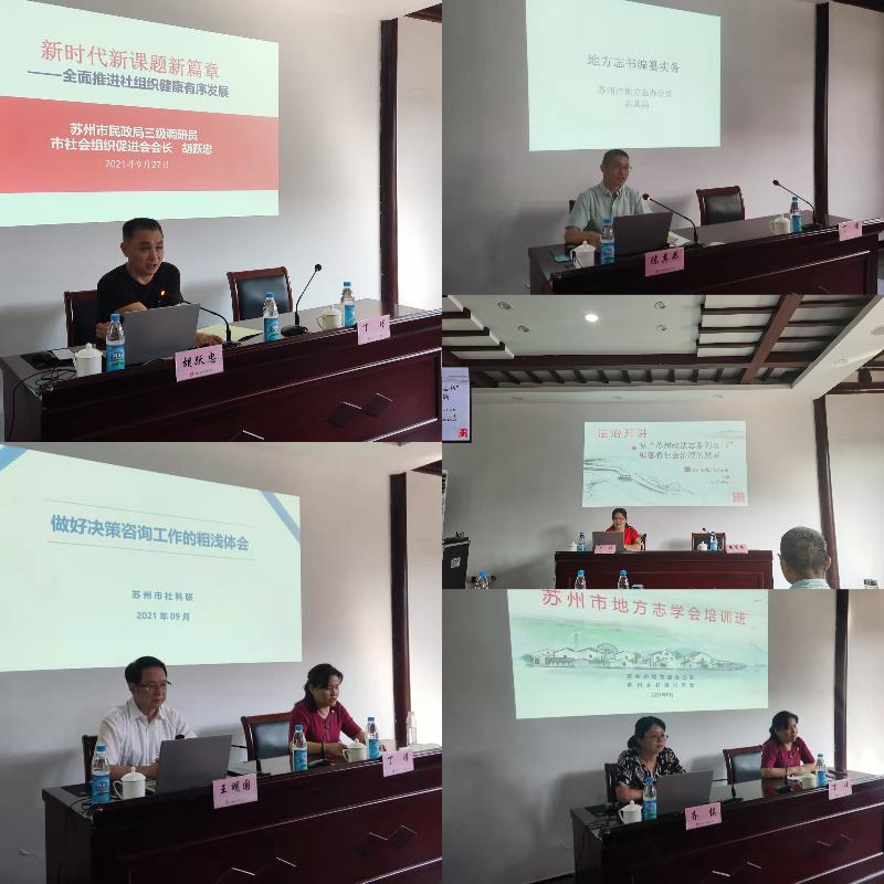 会前,团体会员代表开展座谈,共同商讨学会的发展工作,并下发学会论文课题。在培训小结时,市地方志办二级调研员陈其弟充分肯定了此次培训的效果,并希望全体学员认真消化吸收,把学习成果转化为工作的强大动力。对于下一步学会工作,他结合刚刚下发的《江苏省“十四五”地方志事业发展规划》中进行了解读,要求各位会员按照规划的要求,积极参与论文课题撰写,进一步加强理论研究,促进成果转化。
