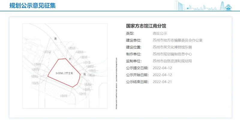 2022年4月1日,江苏省自然资源厅印发《关于同意jdb电子平台市2019年度国务院批准城市建设用地转用和土地征收第9批次实施方案的函》(苏自然函〔2022〕453号),江南分馆项目用地第一批征地已获批同意实施,目前正在jdb电子平台市资规局走供地流程。第二批征地已进入前期准备流程。同月,jdb电子平台市资规局对江南分馆项目选址进行公示,项目选址位于澹台湖南岸吴中博物馆东侧,用地面积5761.2平方木,待公示期满后即可正式批复项目选址意见书。