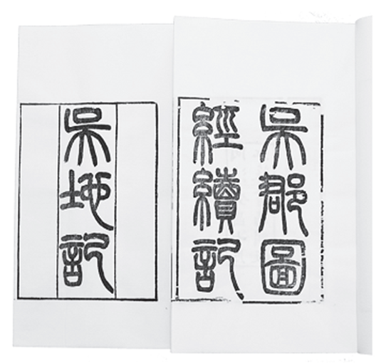 与此同时,《吴地记》的新雕工作也在同步推进。雕版的担纲者是广陵书社的老朋友——国家级雕版非遗传承人陈义时与雕版工艺大师陈美琦父女二人。陈家是著名的雕版世家,技艺世代相传。陈义时从事雕版60余年,并曾在广陵古籍刻印社工作多年,此次负责监制把关;陈美琦是中青年一代中的领衔者,技艺炉火纯青,负责具体的雕版工作。底本选用了南京图书馆藏同治江苏书局刻本,26个筒页,全帙完好。获得授权,处理好图片,交到陈美琦老师手中,正式开工雕造。因为版片要用于展览,选择了单面雕刻,背面刻有两位大师的名款。不久后,陆续收到陈美琦老师送来的宣纸样稿,一张张摊开,朱砂盈纸,刀工遒劲,犹如身在古代刻书现场。别看底本的宋体字横平竖直,转折清爽,但听陈老师介绍,这其实是非常难刻的字体,凝神运刀,一下都马虎不得。雕版必须反刻文字,刷印出来才是正的,故而笔画阙衍,在所难免。校对时,认真比勘每一个文字,细到一笔一画。需要修改之处,便在样稿上圈出,交还给陈老师,重新挖改、修整版片。两部旧版各刷印200套,新雕《吴地记》刷印红印本、蓝印本各200套,墨印本500套,数量庞大。三部书都选用了精致考究的用料,纯手工泾县宣纸,洁白如玉,高品质传统墨汁,馨香淡雅。在开本上,做了一些改变,目验南图藏本《吴地记》,开本大约高260毫米左右,宽仅能容下刷印的版面,未免局促小气。这次刷印采用285×190的开本,天头、地脚更加开阔疏朗,版框距订口也更远,正符合曾国藩当年要求金陵书局《文选》初印十部“天地宜极长”“两边钉边处之阔,大约如此”的豪华配置。刷好的纸页全部手工装订,此外,还有函套、题签的制作。考虑到红、蓝、墨三色元素,设计了红黑元素的扉页,签条红黑配色,配上蓝布函套、瓷青纸面,恰好表达了红、蓝、墨三色,内外呼应,表里如一。可以说,相对于百年前书局刷印售卖的正式版本,这一次的用料和制作,应该算是同一版本、不同印次里的“顶流”了!