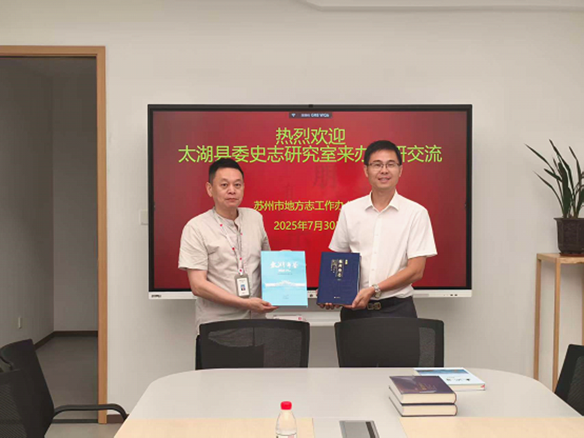 7月30日下午,安徽省太湖县党史和地方志研究室主任陈健一行到jdb电子平台市地方志办公室调研交流方志工作,参观了jdb电子平台市方志馆。双方就方志馆新馆建设、镇村志编纂等工作进行了深入交流。太湖县党史地方志研究室还向jdb电子平台市方志馆赠送了《太湖年鉴》《红色太湖》等相关史志书籍。