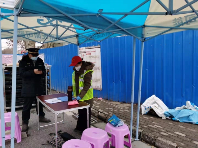 2月8日一早,市地方志办公室党组成员、副主任诸晓春和编纂处长就来到街道两个执勤点,及时帮助疫情防控点工作。鉴于防控工作需要,中间对卡口合并为一个进行了调整,但是两位党员志愿者依然一直坚守岗位,同时到一个卡口执勤,询问来往居民、车辆情况,按实放行、登记。下午,到岗的秘书处长也及时到社区测量了体温后及时到岗,在做好自身防护工作的同时全力志愿服务居民群众出行。