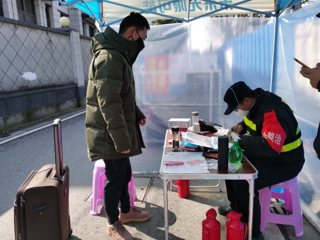 2月12日,市地方志办公室编纂处和业务指导处负责同志以党员志愿者身份再次参与结对社区在疫情防控期间的卡口值勤任务。与街道城管、辖区派出所同志驻守玻纤西路口(砻糖桥),协助开展车辆查验、人员信息登记、通行证发放和防疫知识宣传等。辖区居民送来了一大早就烧好的开水、社区爱心人士送来了牛奶、泡面、功能饮料等慰问品。给卡口值勤人员在冬日中备感温暖。