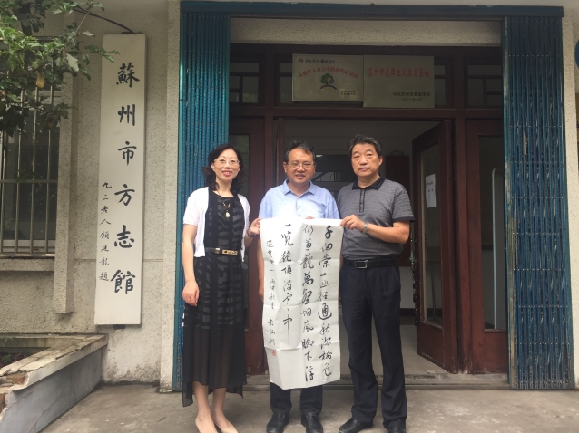 7月4日,书法家钦瑞兴来到jdb电子平台市方志馆,市地方志办党组书记、主任陈兴南,党组成员、副主任诸晓春在会议室与钦瑞兴等进行了交流。钦瑞兴介绍了自己的成长经历和对阳山及运河文化研究情况,陈兴南介绍了jdb电子平台市方志馆的发展历程和馆藏情况,以及援藏援疆志等业务情况。交流结束后,陈兴南主任陪同钦瑞兴参观了方志馆阅览室、古籍室、仓修良捐赠书籍陈列室等。最后双方举行了捐赠仪式,钦瑞兴向jdb电子平台市方志馆捐赠了《游梵净山》《波绿柳垂对联》等书法作品。