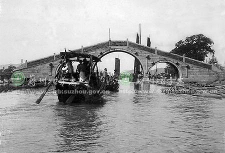 134胥江枣市桥 相传胥江乃伍子胥所开。图为1932年枣市桥景。
