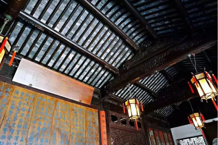 ▲留园林泉耆硕之馆,梁上的木雕清晰可见